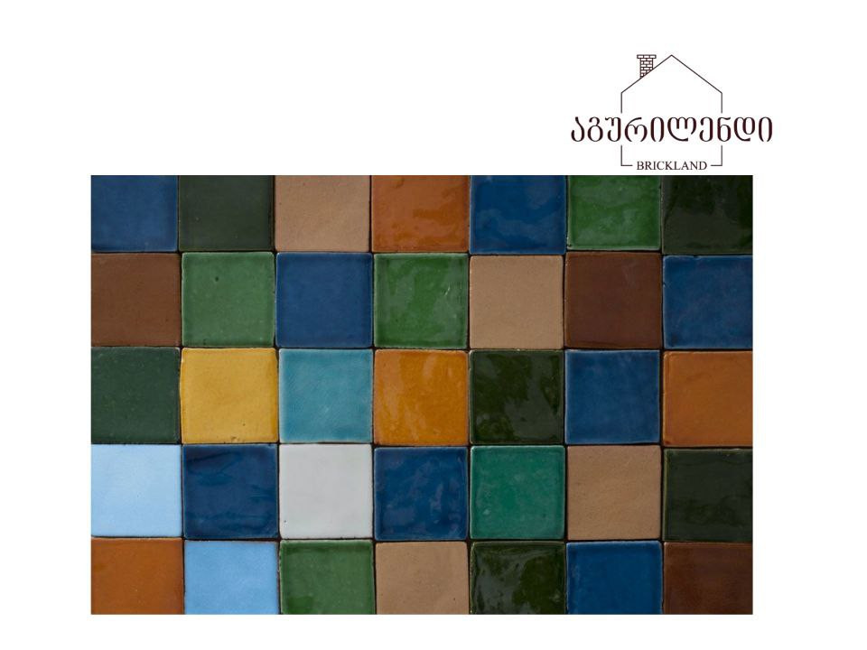 ხელნაკეთი მოჭიქული აგური ფერადი. მზადდება სხვადასხვა ზომასა და ფერში.