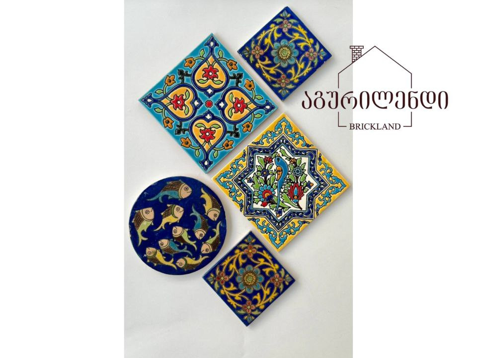 ხელნაკეთი მოჭიქული კერამიკა სხვადასხვა ნახატით